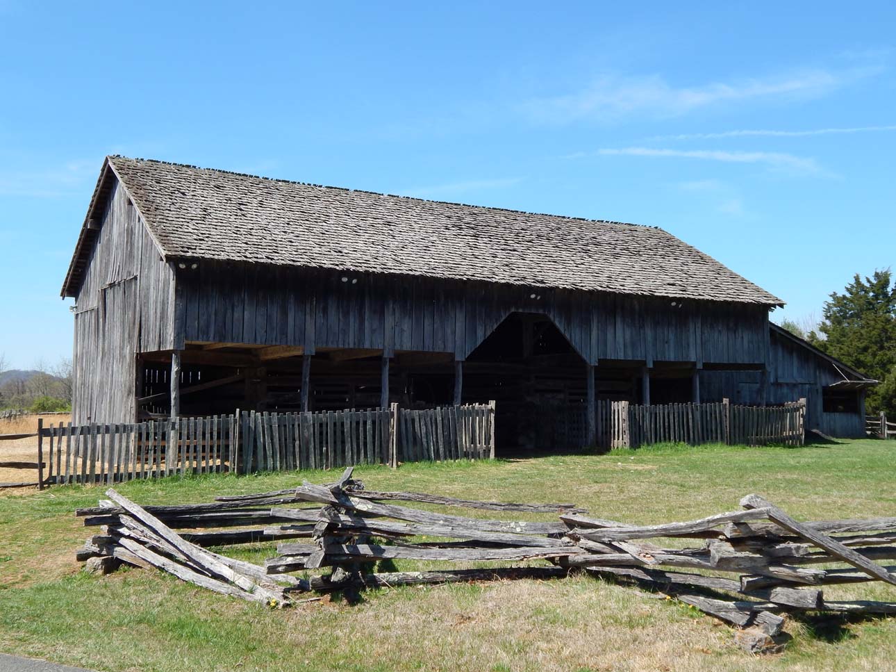 The work focused on the careful restoration and preservation of the existing Visitors Center and surrounding historic site. Improvements included replacement of the building’s roof with new gutters, downspouts, and underground drainage to protect the structure from water intrusion, as well as interior repairs to restore and maintain the building’s functionality. Two deteriorated porches were demolished and reconstructed to maintain the architectural character of the facility while improving structural integrity. Site upgrades included installation of new drainage piping, resurfacing and striping of existing paved areas with new concrete curb and gutter, remediation of pathways to meet ADA accessibility requirements, and replacement of rail and picket fencing to restore the site’s historic appearance. Because the property is a designated archaeological site, construction activities were carefully managed to minimize ground disturbance, and protective measures were implemented throughout the project to preserve both the historic structure and the surrounding landscape. Additionally, prior to upgrading site work, The R&S team worked with the State of Tennessee to restore existing roofs on historical building replicas.